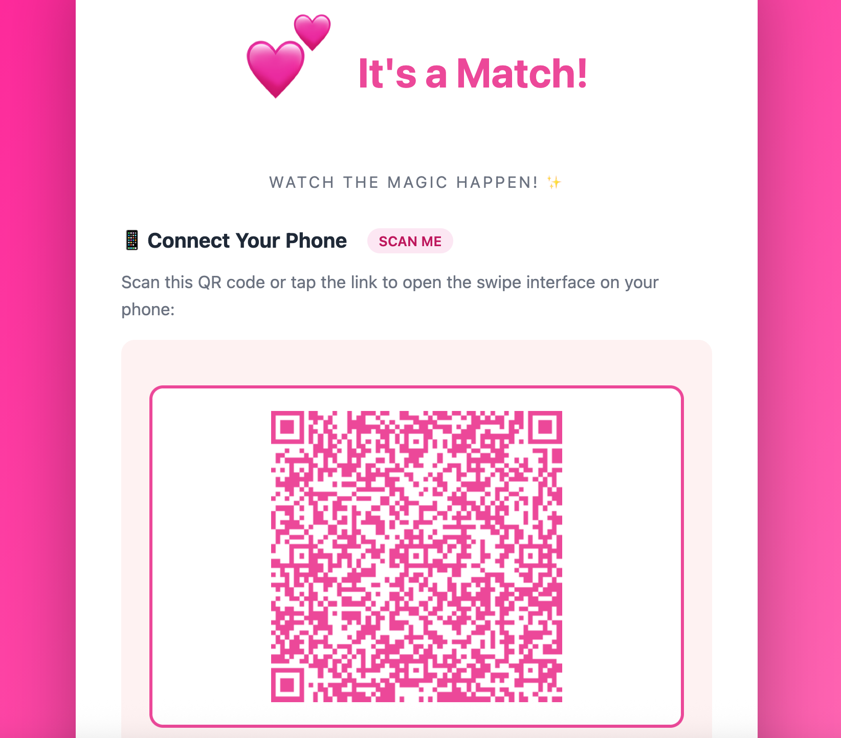 1. Visit or refresh the match app and scan the QR code to connect your phone.